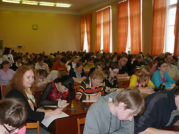 Справка:Тотальный диктант – образовательная акция, направленная на популяризацию грамотности, повышение интереса к русскому языку, сохранение и развитие русской речевой культуры. Идея тотального диктанта принадлежит творческому объединению гуманитарного факультета НГУ – Глум-Клубу. С 2004 года из университетского мероприятия он превратился в акцию городского, и даже федерального масштаба.