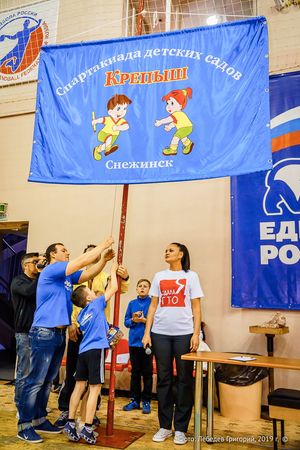 После спортивных эстафет для участников и болельщиков выступили с массовым танцем воспитанницы Федерации чирспорта и чирлидинга города Снежинска. Пока судейская коллегия подводила итоги, танцевально – спортивные команды «Крепыша» порадовали своим ярким и зажигательным танцем «Я, ты, он, она – вместе дружная семья».