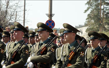 После возложения цветов на площади Победы состоялся военный парад войсковой части 3468.