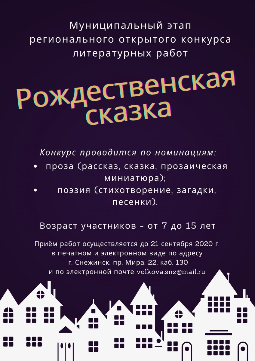По инициативе Министерства культуры Челябинской области в рамках комплекса мероприятий, посвященных празднику «Рождество Христово», объявлен муниципальный этап регионального открытого конкурса литературных работ «Рождественская сказка».