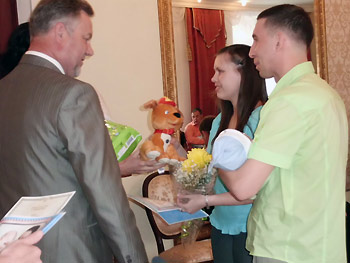 Вручение подарков, именных открыток и цветов молодым родителям и их новорожденным малышам |