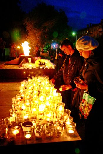 Сильный с порывами ветер бушевал весь день 21 июня и ставил под угрозу проведение молодежной патриотической акции «Сто зажженных свечей». Огонь свечи, главного атрибута акции, невозможно было удержать и секунды, на ветру он тут же гас. Не обнадеживал и прогноз погоды на 22 июня. Но к одиннадцати вечера 21-го, времени сбора участников на площади Ленина, порывы ветра удивительным образом уменьшились, а когда колонна в 23-30 начала движение по бульвару Свердлова совсем стихли.