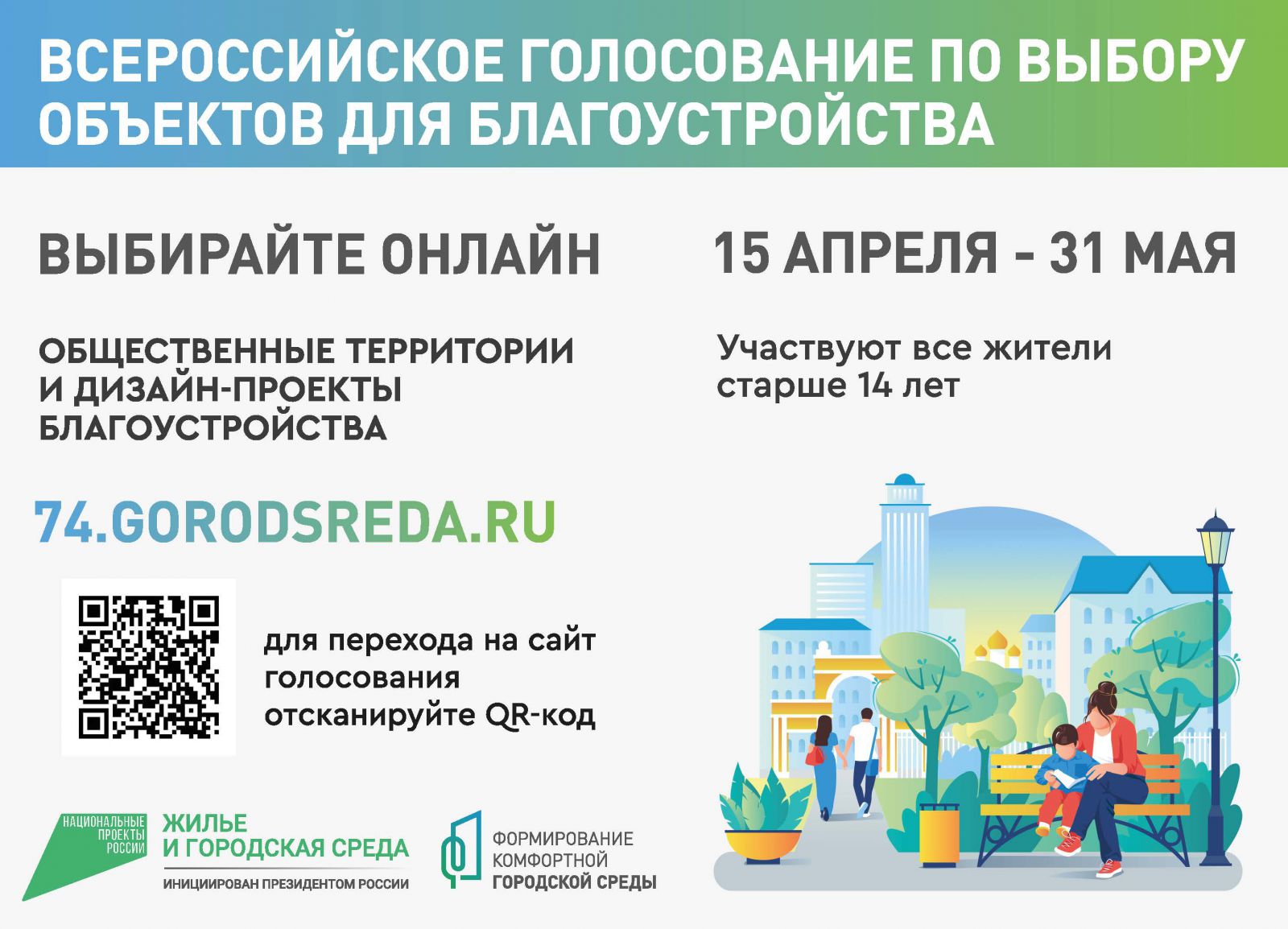 Напомним, что голосование за объекты благоустройства, которые будут реализованы в 2024 году, проходит с 15 апреля по 31 мая текущего года. С помощью онлайн-голосования граждане могут высказать свое мнение и определить приоритетные направления развития общественных пространств. Больше узнать об объектах для голосования в Челябинской области можно на платформе 74.gorodsreda.ru. Также проголосовать можно и при помощи волонтеров: для этого жителю потребуется только назвать действующий номер телефона и подтвердить свое участие кодом, который придет на указанный номер. Отдать свой голос может каждый, кому уже исполнилось 14 лет.