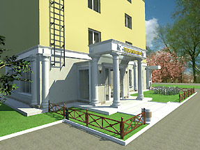 - путем проведения ремонта существующей входной группы предприятия торговли «Мода» создать архитектурный комплекс, состоящий из двух входных групп в едином стиле (при этом учитывать точки восприятия);