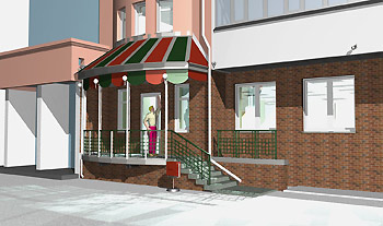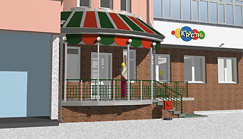 Согласовать представленный эскизный проект входной группы магазина непродовольственных товаров (игрушек) со следующими рекомендациями: