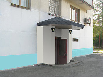 - в целях обеспечения целостности архитектурно-художественного облика входной группы изменить цвет окраски перил на светло-серый (серебристый).