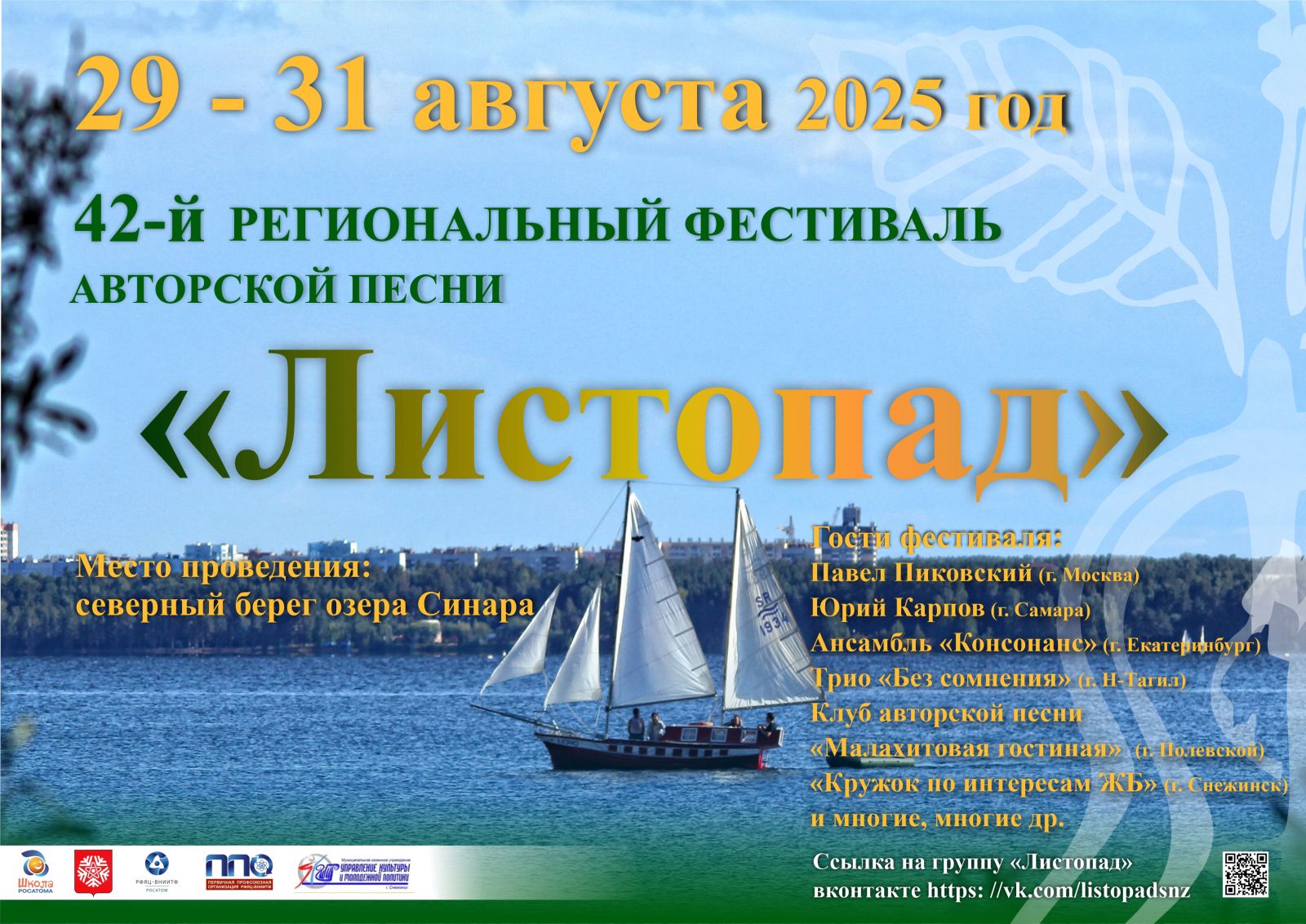 Один из крупнейших фестивалей авторской песни Урала "Листопад" соберет исполнителей и любителей жанра из более чем 20 городов региона, включая Екатеринбург, Челябинск, Озерск, Миасс и другие города присутствия Росатома.