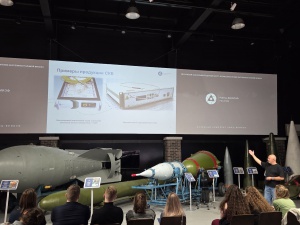 На семинаре-практикуме, который прошел в музейном комплексе РФЯЦ–ВНИИЭФ, выступили Евгений Смирнов, Илья Пензин, Никита Михайлов и Максим Лупачев. Они погрузили студентов физического факультета в научные направления деятельности снежинского ядерного центра: