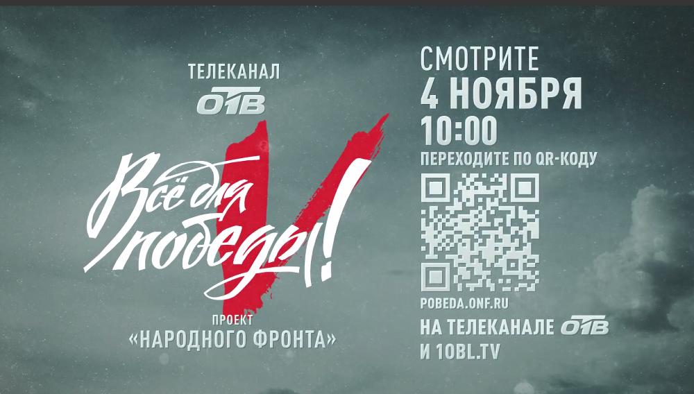 4 ноября, в День народного единства, на телеканале ОТВ пройдет праздничный телемарафон в рамках проекта «Народного фронта» «Всё для Победы!», сообщают организаторы.