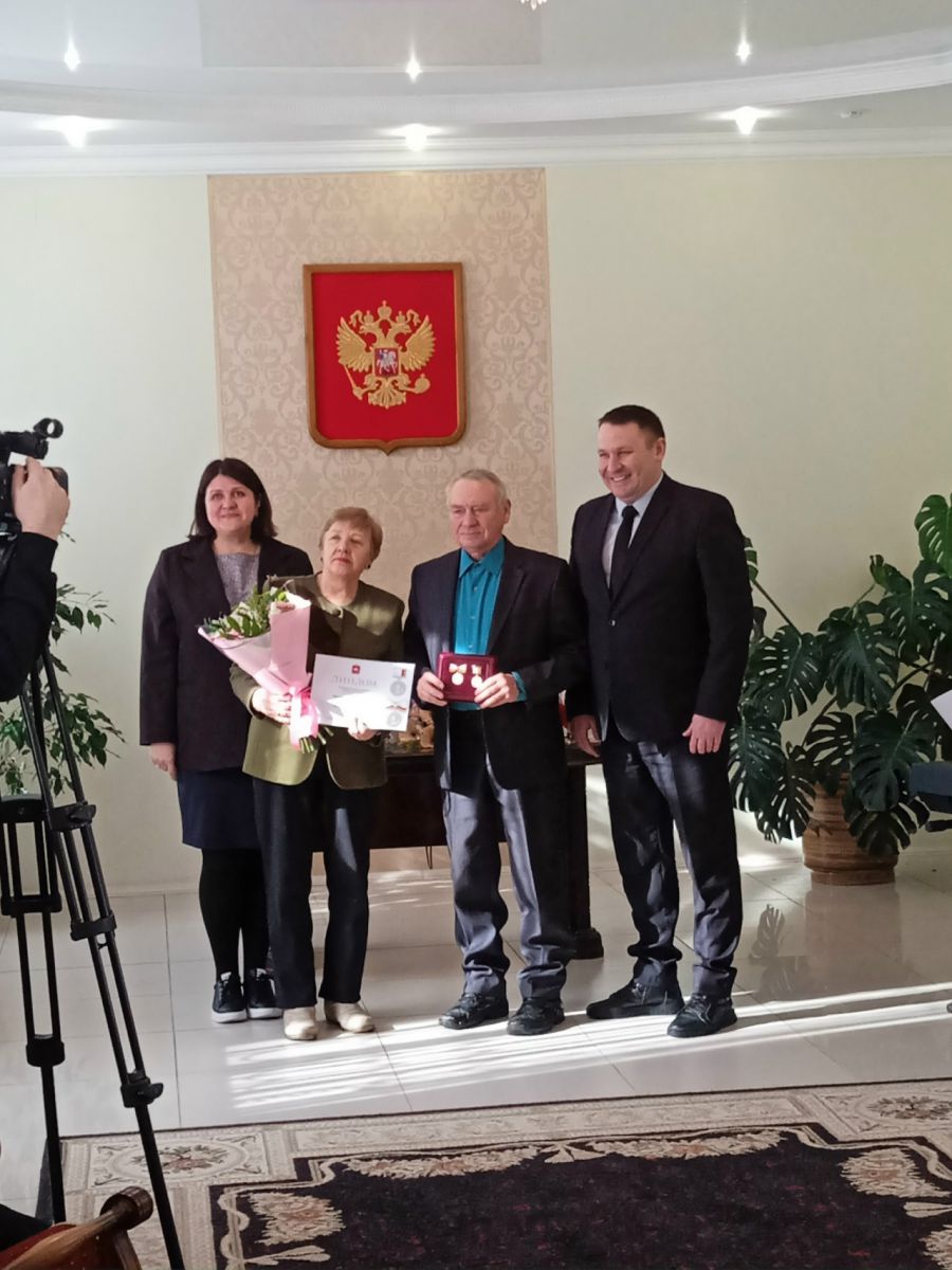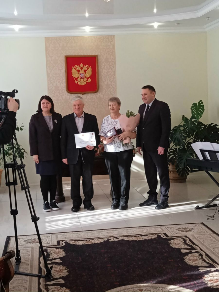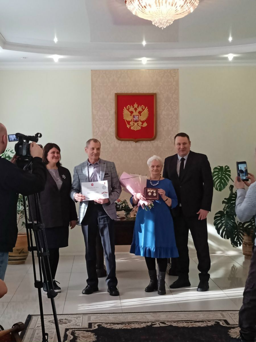 Семья Подгорновых: Владимир Аминович и Ирина Васильевна на вручение знаков отличия Семейное счастье. В браке воспитали двух сыновей. За многолетний добросовестный труд супруги имеют награды и грамоты.