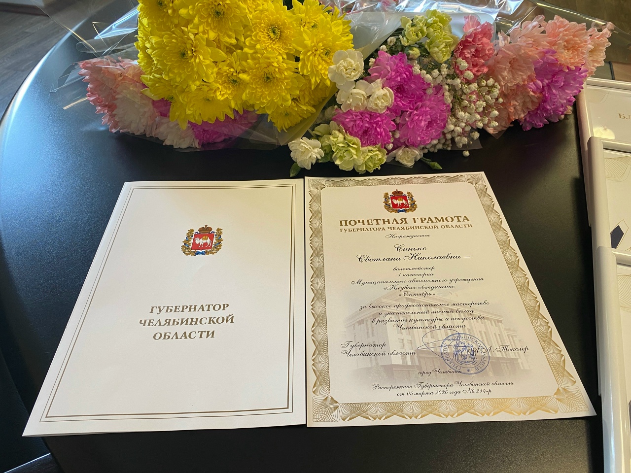 Синько Светлана Николаевна – балетмейстер 1 категории «Клубного объединения «Октябрь» награждена Почётной грамотой губернатора Челябинской области А.Л. Текслера за высокое профессиональное мастерство и значительный личный вклад в развитие культуры и искусства.
