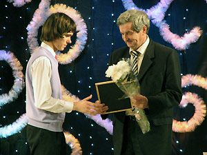 Призы от муниципалитета и РФЯЦ - ВНИИТФ также получил девятиклассник 135 школы Иван Нецветаев. Главный конструктор РФЯЦ А. Н. Аверин пожелал юному дарованию новых успехов.