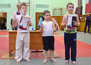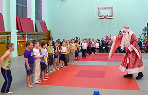 Турнир по дзюдо на призы Деда Мороза проходил в нескольких возрастных группах. К самым юным спортсменам пришел с поздравлениями сам Дед Мороз. Он очень порадовал ребят, организовав для них веселые игры и эстафеты. И, конечно же, вручил подарки. Каждый участник турнира получил маленького дракончика – символ наступающего года.