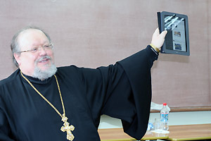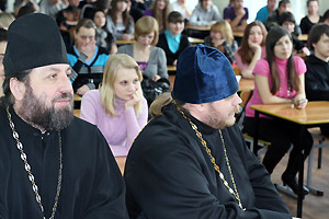 Историк по образованию, руководитель молодежного отдела Челябинской епархии, член Общественной палаты Челябинской области отец Игорь подчеркнул, что главная задача Церкви – именно просвещение. Гость также отметил значение в этом процессе современных технологий, в частности Интернета и социальных сетей, в которых православных пользователей становится все больше и больше. «Я сам являюсь пользователем социальных сетей, – признался отец Игорь, – Своевременное оперативное извлечение информации позволяет студентам справляться не только с учебными заданиями, но и с проблемами бытовой жизни. Другое дело, что каждый выносит из сокровищницы свое. Поэтому подумаете, прежде чем внести то или иное понятие в колонку поисковика!»