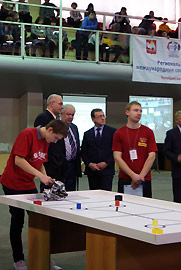 Региональный этап Международных состязаний роботов впервые проводился в течение двух дней. В первый день по итогам трех попыток определялись восемь сильнейших команд в каждой возрастной группе. Задача участников основной категории осложнялась тем, что на полную сборку и отладку робота регламентом было отведено два часа. Самые юные участники соревнований Денис Щукин, Кирилл Устюгов («Lego-trekkers») и Иван Дубровин, Даниил Власов («Диван») выполнили поставленную задачу – собрали своих роботов и вовремя вышли на старт. Зал, затаив дыхание, следил за роботом и за шариками, которые он раскладывал в цветные ячейки. Каждую попытку зрители поддерживали аплодисментами.