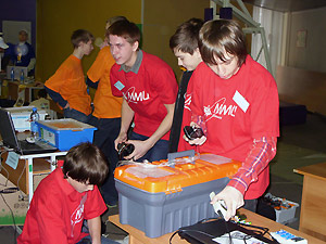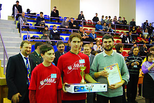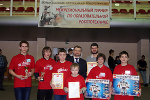 Поздравляем с победой в региональном этапе Международных состязаний роботов Михаила Руданова, Леонида Тихонова, Владимира Воронина, Сергея Фельдшерова и их тренера Сергея Модестовича Шлягу!