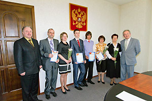 Сегодня глава администрации города Вадим Абакулов и начальник Управления образования Борис Беккер вручили благодарственные письма гимназистам, родителям и педагогам ребят и пожелали Роману и Ярославу дальнейших успехов и побед.