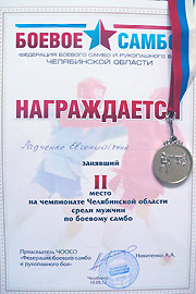 А Евгений Радченко, уверенно ведя в финальном поединке, был близок к победе, но на последних секундах упорной борьбы допустил небольшую оплошность, в результате чего золотая медаль досталась его сопернику. Евгений завоевал серебро.