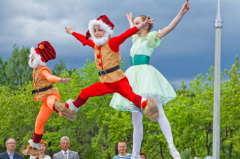 К собравшимся в парке супружеским парам и членам их семей обратился со словами приветствия первый заместитель главы администрации города В. В. Знаменский. Юные воспитанники коллектива «Формула танца» и начинающие артисты ПКиО подарили всем пришедшим на бал прекрасный вальс и другие концертные номера.