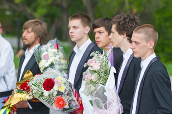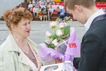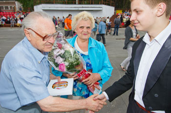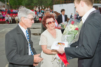 Красоту и торжественность вечера дополняли наряды присутствующих. Дамы с букетами цветов, мужчины в строгих костюмах, поддерживающие своих любимых. Для многих эта встреча стала именно той торжественной церемонией, которую не удалось пройти в юности. «Молодые» выходили к сцене в сопровождении юношей в черных фраках. Цветы и подарки были вручены всем 143 парам, приглашенным на бал.
