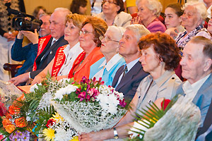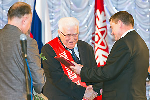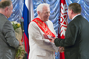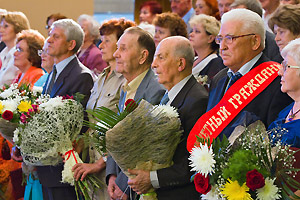 Вчера, накануне празднования Дня города, во Дворце творчества детей и молодежи глава городского округа А. Н. Тимошенков и глава администрации В. Б. Абакулов провели торжественный прием Героев Социалистического Труда, вдов и родителей Героев РФ, Почетных граждан и Почетных ветеранов города с приглашением 39 снежинцев.