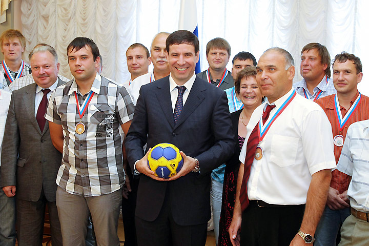 Глава региона поздравил спортсменов с победами в сезоне 2011-2012 годов и заслуженными наградами. «Ваши команды давно стали визитными карточками Снежинска и Верхнего Уфалея. Вы достойно представляете Южный Урал на крупных российских турнирах. В этом сезоне «Никельщик» взял золото чемпионата России по хоккею с мячом. «Сунгуль» –российскую бронзу в гандболе, – отметил Михаил Юревич. – Очень приятно, что в небольших городах работают спортивные школы. Я большое внимание уделяю тому, чтобы наша молодёжь имела возможность заниматься спортом. В области в целом много школ по самым разным спортивным видам – водному поло, хоккею, борьбе, легкой атлетике. Это очень престижно для Челябинской области». Глава региона пожелал командам дальнейших успехов и новых ярких побед.