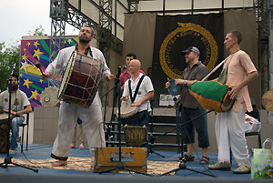 Около 350 зрителей пришли на выступление коллективов этнических культур Индии, Австралии, Африки, Тывы... В парке культуры и отдыха можно было послушать африканские барабаны, индийские баджоны и горловое пение.