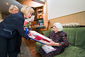 Ольга Дубровина отметила, что такой юбилей, по сути, рекорд для Снежинска. На сегодня в городе проживают 97 человек, чей возраст перевалил за девяносто. Из них трое старше 100 лет: Р. С. Криницкой – 105 лет, 103 года исполнится 11 сентября Н. Г. Благочинновой, 101 год исполнился 24 июня П. Г. Чиркину.