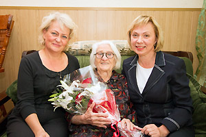Со знаменательной датой пришли ее поздравить заместитель главы администрации Ольга Лаптева и начальник управления социальной защиты населения города Ольга Дубровина.