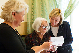 Р. С. Криницкойбыло сказано немало теплых слов и вручены подарки от главы города как долгожительнице и поздравительный адрес.