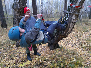 Дистанция была представлена такими этапами, как навесная переправа, переправа через болото, параллельные перила, спуск и подъем по перилам, переправа по бревну.
