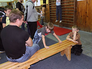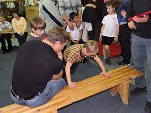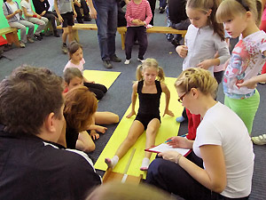На этот раз ребята состязались в двух этапах. Этап «Гибкий» включал в себяупражнение наклон вперед сидя,этап «Сильный» - вис на перекладине и отжимание от скамьи.