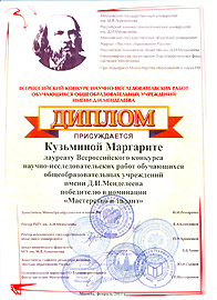 С 5 по 8 февраля в Москве проходил Всероссийский конкурс научно-исследовательских работ обучающихся образовательных учреждений имени Д. И. Менделеева, в котором приняли участие учащиеся МБОУ СОШ № 135 им. академика Б.В. Литвинова.