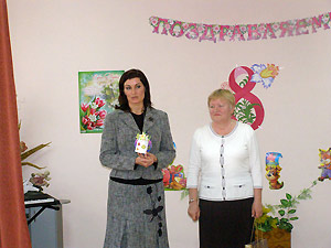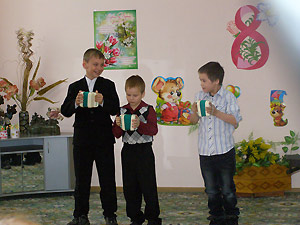 Всех женщин-гостей ребята поздравили с праздником вручением милых бумажных корзин с подснежниками, сделанными собственными руками.