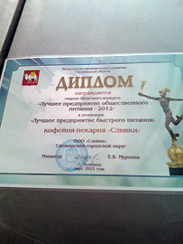 Лауреатом областного конкурса «Лучшее предприятие общественного питания – 2012» в номинации «Лучшая кофейня» стало специализированное предприятие кофейня-пекарня «Оливки» индивидуального предпринимателя Л. В. Кофановой.