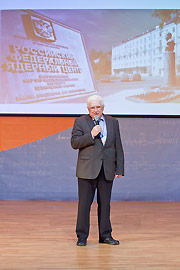 Первый заместитель директора РФЯЦ – ВНИИТФ Родион Вознюк: «Мы рады приветствовать вас в стенах нашего института. Вы увидите, чем занимается наше предприятие. Мы весьма надеемся, что в ком-то из вас укрепится уверенность в том, что нужно себя посвятить служению Великому Атому».