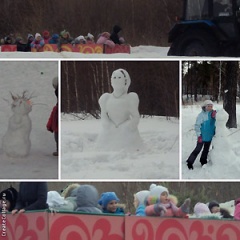Погода была на редкость солнечная и тёплая, из подтаявшего снега по всему парку дети и взрослые лепили снеговиков.