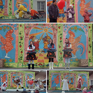 На главной сцене развернулась сказочная шоу-программа с конкурсами для зрителей «Как на масляной неделе в потолок блины летели!». Весёлые скоморохи, и герои сказки провожали Зиму и встречали Весну.