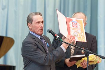 Вечером, на торжественном приеме, глава города А. Н. Тимошенков вручил Почетную грамоту городскому Совету ветеранов.