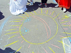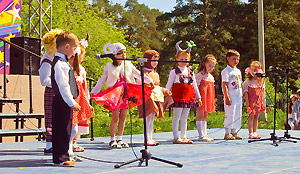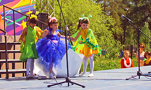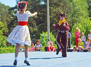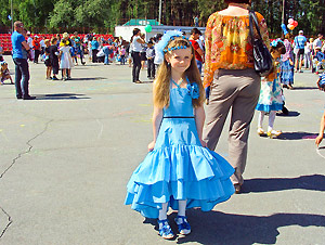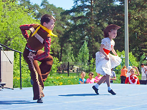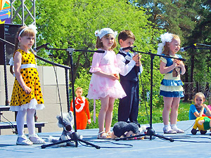 Стадион «Комсомолец» был полон детей и их родителей. Песни, общие танцы детей и взрослых, замечательный конкурс рисунков порадовали всех.