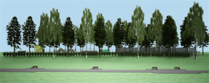 Со стороны улицы 40 лет Октября вдоль периметраучастка снаружи основного ограждения предполагается высадка плотного кустарника (сирень).