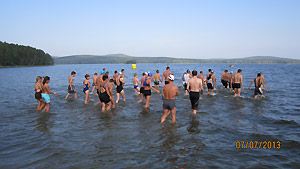 По итоговым подсчетам, в нем приняли участие: «Синара Мини» – 42 человека (плавание по озеру 150 метров, велогонка шоссе – 3,6 км, бег по лесу 1,6 км); «Синара Профи» – 38 человек (плавание по озеру 750 м, велогонка шоссе – 20 км, бег по лесу – 5 км).