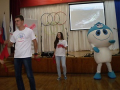 «От Олимпа в Греции – к Олимпу в Сочи» - так называется первый этап. Коллектив школы № 125 подготовил красочное выступление - рассказ об истории олимпийского движения и олимпийских видов спорта. Собравшихся приветствовал Снежик, который провел с ребятами викторину.