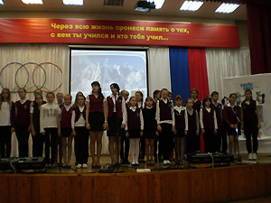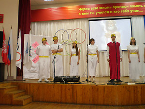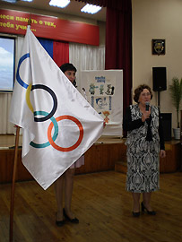 Были также представлены переходящие символы городской эстафеты - олимпийский флаг и альбом (в него каждой школой будут вложены материалы, сценарии и фотографии проведенных мероприятий), которые торжественно были переданы представителям школы № 126. Уже 16 ноября там пройдет второй этап эстафеты - «Приносящие удачу» (о талисманах Олимпийских игр).