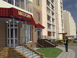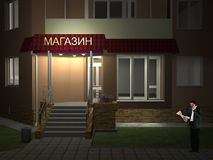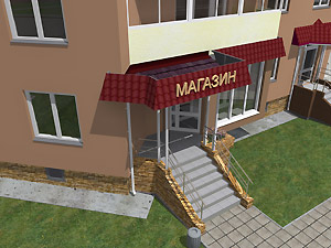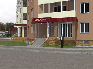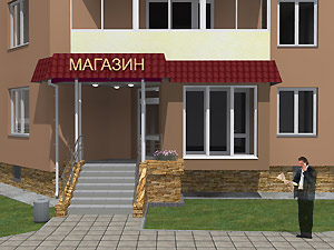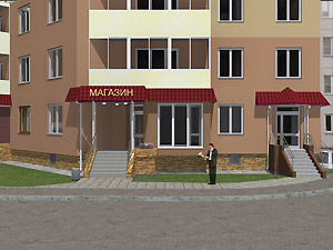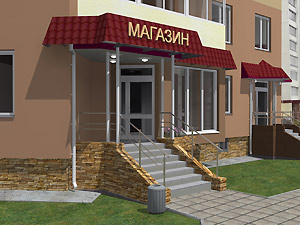 3. Эскизный проект объекта: ул. 40 лет Октября, д. 4 «Организация входной группы в магазин непродовольственных товаров» (заказчик – А. Н. Корочкин).