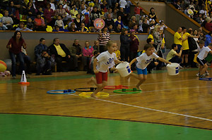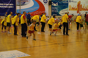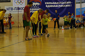 Сто пятьдесят два «крепыша» из девятнадцати детских садов и семьдесят шесть родителей соревновались в четырёх эстафетах: «Передача олимпийского факела», «Олимпийский почтальон», «Тренировка смелости, быстроты и ловкости», «Состязания конников».