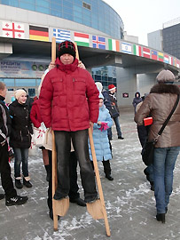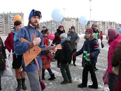 На площади у Ледовой арены «Трактор» детей встречали герои русских народных сказок, чтобы поиграть в народные игры и забавы.