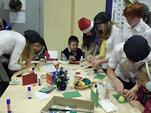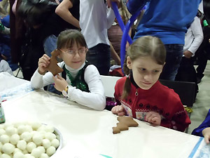 Сказочные герои провели мастер-классы по изготовлению елочных игрушек, гирлянд, новогодних коржиков и др.