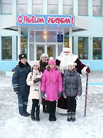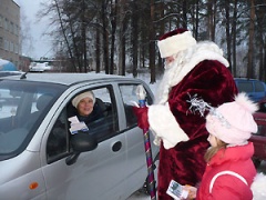 Два дняподряд детей и родителей, спешивших во Дворец творчества на Ёлку, встречали ГАИшный Дед Мороз и юные инспекторы движения.