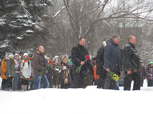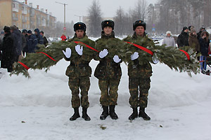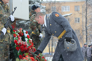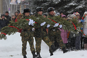 После выступлений участники митинга возложили венки и цветы к памятнику воинам-снежинцам. Отдавая воинские почести погибшим героям, перед памятником торжественным маршем прошел почетный караул.